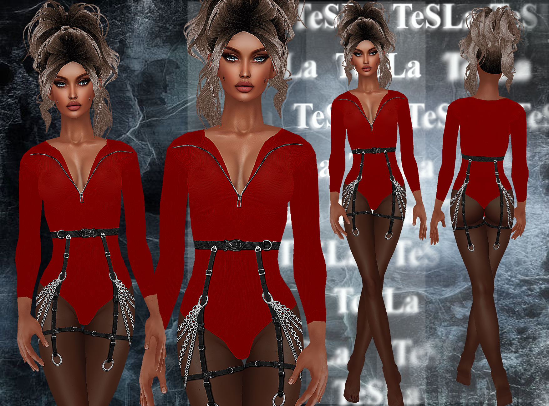 Портупея как верх, боди как нижнее белье, колготки как тату