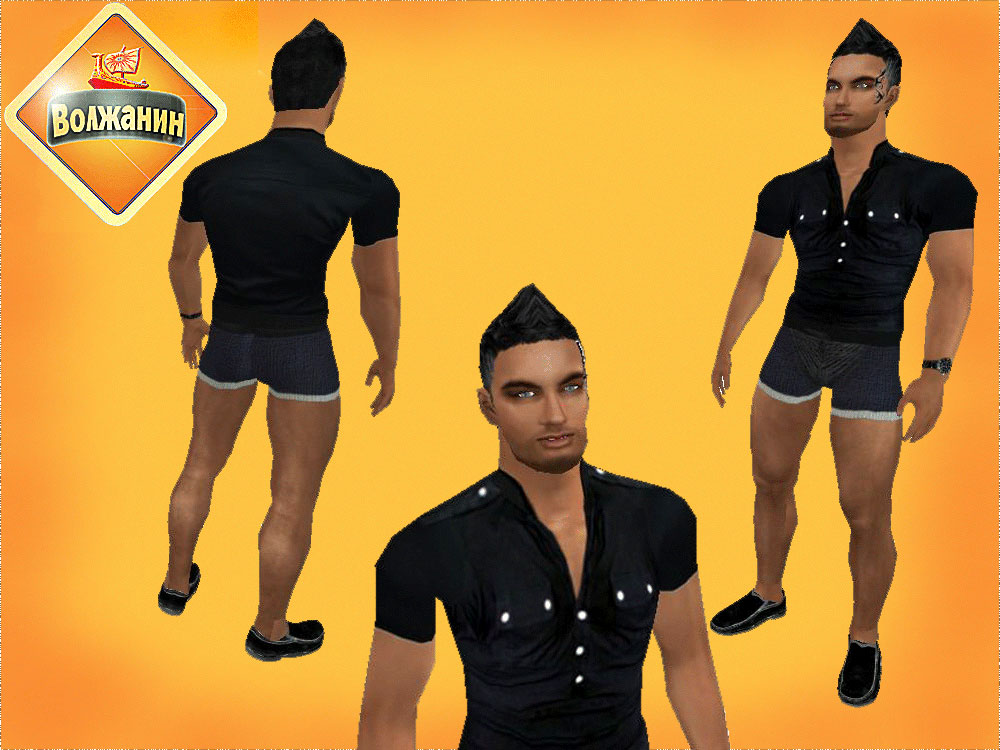 Чёрная рубашка с коротким рукавом + трусы (объём)